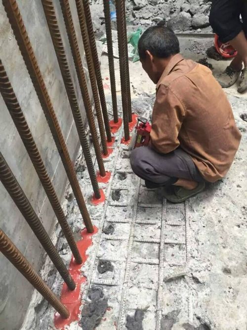 1、注射式植筋胶按照工程设计需要,在基材里面对应位置进行钻孔,孔径、孔深与钢筋直径要由技术工人或者是场地试验确定。