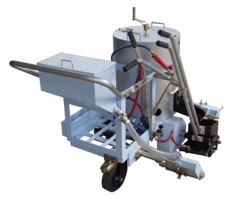 3、材料的热熔。常规的施工机械有手推式热熔画线机,该工具上有溶解釜,并有