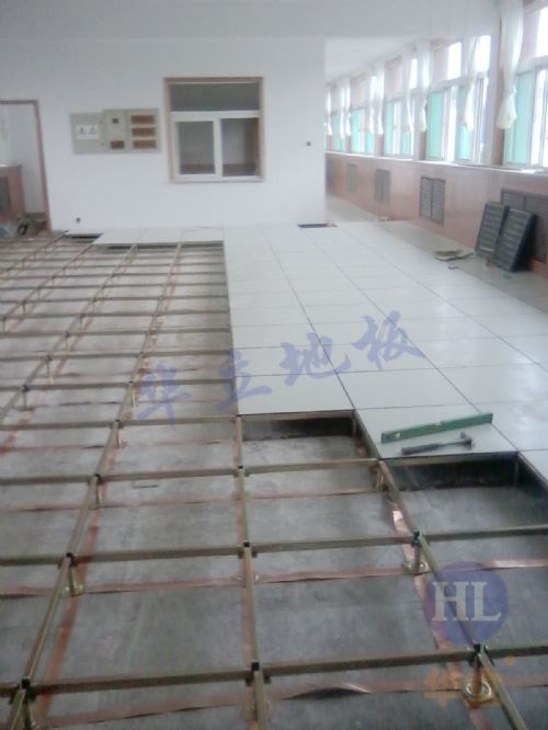 华立高档PVC防静电地板的外表经磷化后进行静电喷塑处理,内腔填充标准配比水泥,上表面粘贴高耐磨防火高压层板PVC板,四周镶嵌导电边条,系统由地板、横梁、支座组成。提供高承载防静电工作面和下部铺设各种线路的空间。