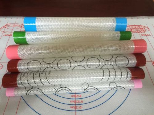 8.容易收纳--平常不用的时候,可以卷起来存放,不占空间。中间看似网状,实际是增强的玻璃纤维使硅胶垫更耐高温和尺寸稳定,实则异常平滑。水滴如初晨青草上露珠,在硅胶垫上自由滚动,不沾特性优良