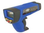 是一种非接触式的测温仪,只经扣动扳机,红外光点落在需要目标物上即可,