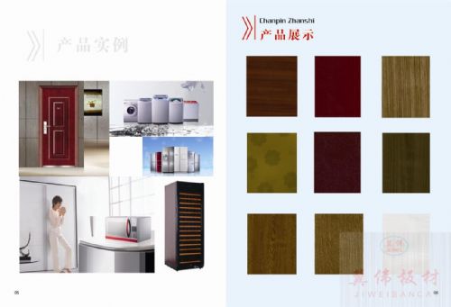 热水器、空调、DVD、电脑机箱等大小家用电器的面(侧)板覆膜彩图板(VCM)有光亮和亚光两种,表面花纹色彩丰富(如:当今家电行业*流行的