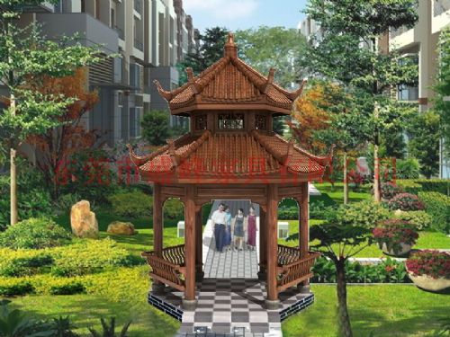 3. 根据情况一般配有地板,柱子与柱子之间也会有有坐板、靠背相连。靠背采用弧形做法,使人靠上去舒适自然。b)同时配有古典窗格起到装饰和加固作用。c)做工精细,顶盖一般配有翘角的部分可以做到大幅度翘曲,美观大方。或是选择纯手工雕刻的龙头翘角等代表吉祥如意。立柱上也可以选择配配纯手工雕刻,美轮美奂。