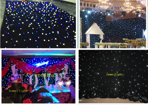 本产品极易安装且适用用各种舞台,时尚剧院,给人一种梦幻的感觉,仿佛置身于繁星之中。幕布是采用高档的防火阻燃天鹅绒,双层的,灯珠和线都在幕布中间。灯珠每平米20颗,颜色可以按照客户的要求定做。尺寸可按客户要求做,幕布颜色有:黑色 深蓝 白色 红色。灯珠颜色可变化。
