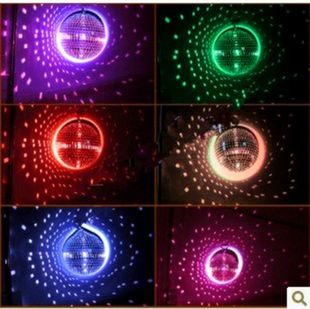 的转动,使贴满无数小镜片的圆球不停的转动,通过光的反射。折射出五颜六色的光点。
