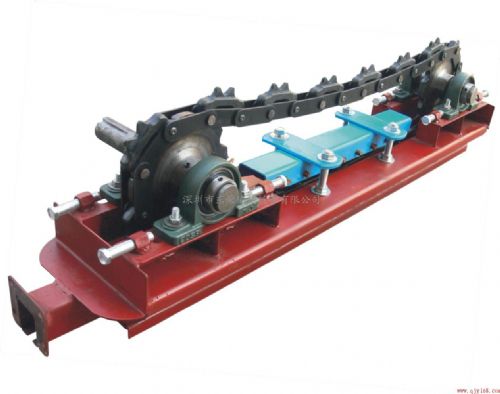 增力后传递给驱动履带,由驱动履带上的拨爪来拨动输送