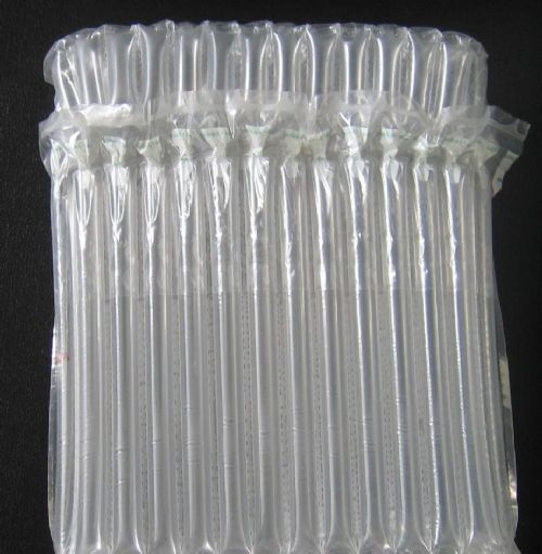 属于新型发明的一种包装材料,利用空气柱,以2cm-4cm的空气柱体制作成合身的缓冲套件,因空气柱充气65%自然形成缓冲,连结起独立的气柱,形成环绕对象的*佳的缓冲包装。