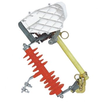管道形成纵吹,电弧被迅速拉长而熄灭。熔丝熔断后,下部动触头失去张力而下翻,锁紧机构释放熔丝管,熔丝管跌落,形成明显的开断位置。当需要要拉负荷时,用绝缘杆拉开动触头,此时主动、静助触头仍然接触,继续用绝缘杆拉动触头,辅助触头也分离,在辅助触头之间产生电弧,电弧在灭弧罩狭缝中被拉长,同时灭弧罩产生气体,在电流过零时,将电弧熄灭。