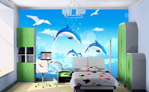 沙发背景墙、大型无缝壁画、天顶天花壁画、