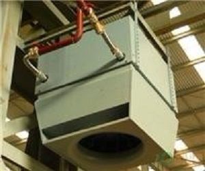 风机吊装在棚顶处,吸入室内空气并在盘管