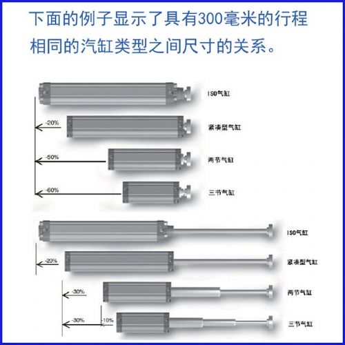 3、减少尺寸:60%低于标准的气缸