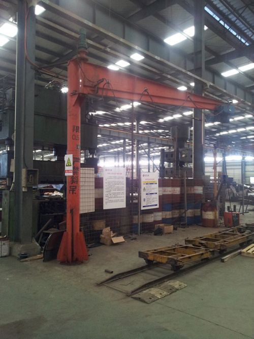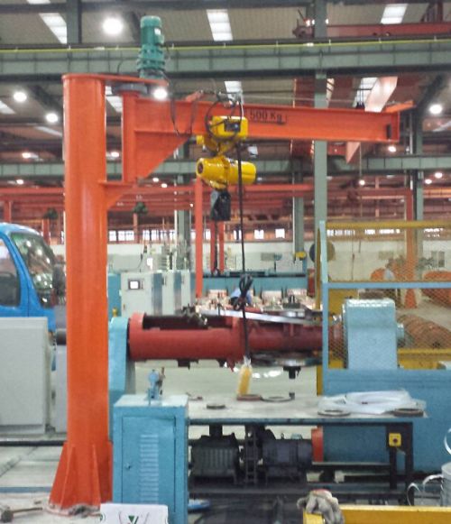 起重机。所有的规格都具有一个共同的优点:自重轻,旋臂长,起重量大。旋臂式起重机可配套供应电器附件,
