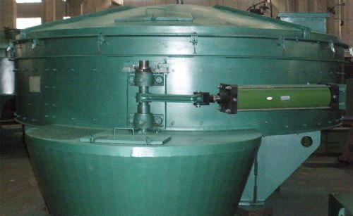 电磁阀动作、开门机构中气缸动作,使卸料门开启,混合完的物料被涡浆装置上的铲片和刮板排除筒体,然后卸料门再关闭,完成一个混合周期。