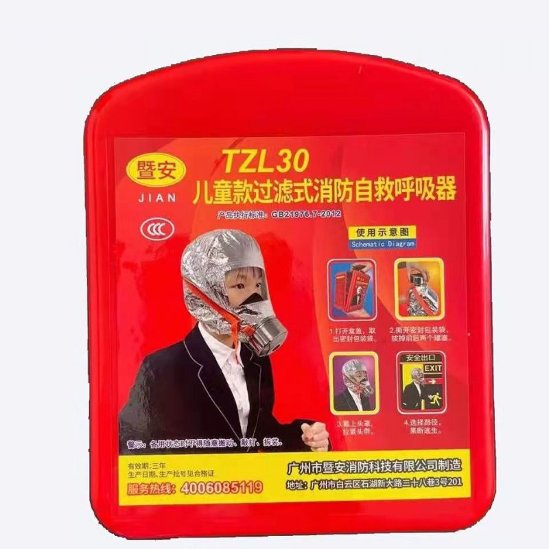 暨安牌TZL30型过滤式消防自救呼吸器就是一种保护人体呼吸器官不受外界有毒气体伤害的*呼吸器,它利用滤毒罐内的药剂、滤烟元件,将火场空气中的有毒成份过滤掉,使之变为较为清洁的空气,供逃生者呼吸用。本产品按《中华人民共和国国家标准》 GB 21976.1-2008和GB 21976.7-2012的技术要求制造。