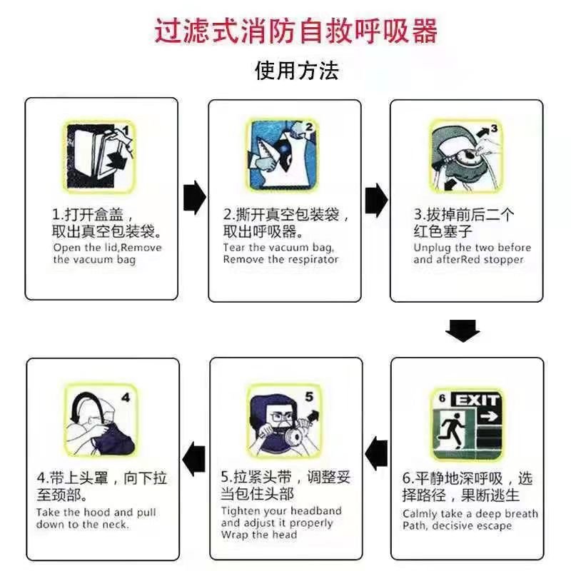 1.本产品仅供一次性逃生使用,不能用于工作保护。