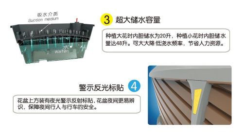 14.警示反光标贴:花盆上方装有夜光警示反射标贴,花盆夜间更易辨识,保障夜间行人与行车的安全。