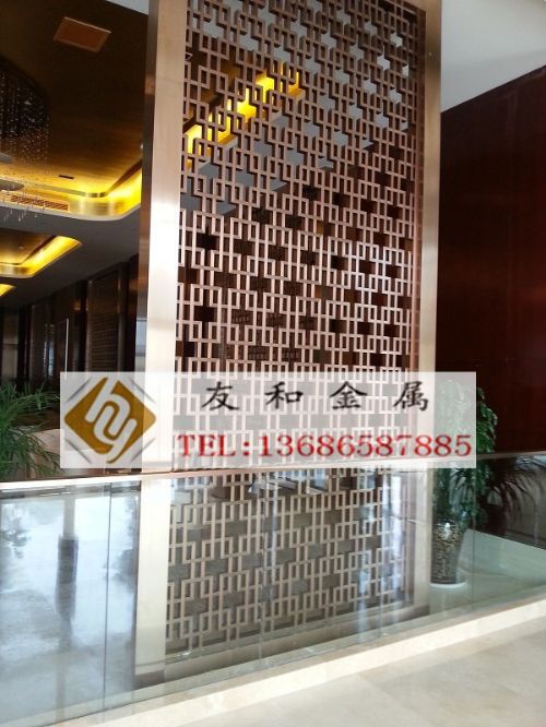不锈钢花格属于一种新兴的材料,相比与以前的木雕花格,它防火能力强,材质坚硬,不易变形。