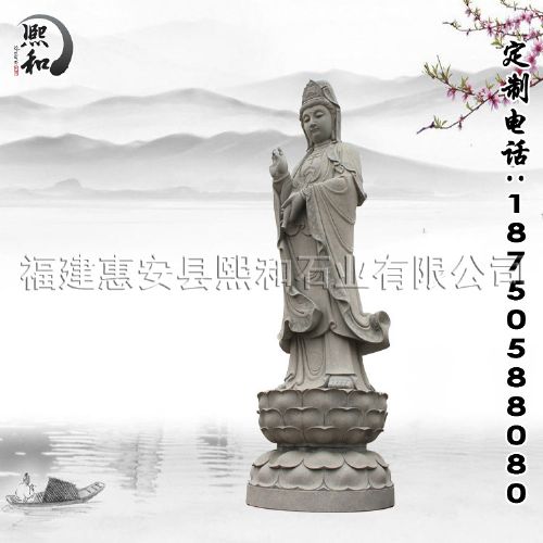 观世音菩萨是佛教中慈悲和智慧的象征,无论在大乘佛教还是在民间信仰,都具有极其重要的地位。以观世音菩萨为主导的大慈悲精神,被视为大乘佛教的根本。观世音菩萨具有平等无私的广大悲愿,当众生遇到任何的困难和苦痛, 如能至诚称念观世音菩萨,就会得到菩萨的救护。而且,观世音菩萨*能适应众生的要求,对不同的众生,便现化不同的身相,说不同的法门。此外,石雕观音的形体、容貌和姿仪皆祥和、宁静、端祥、庄严,适合放在寺庙中进行供奉,及广场上保佑地方的安定祥和,庇佑当地人民。