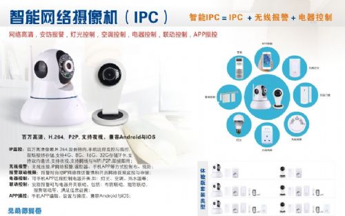 1.IP监控:百万高清像素,H.264,云台转向,手机