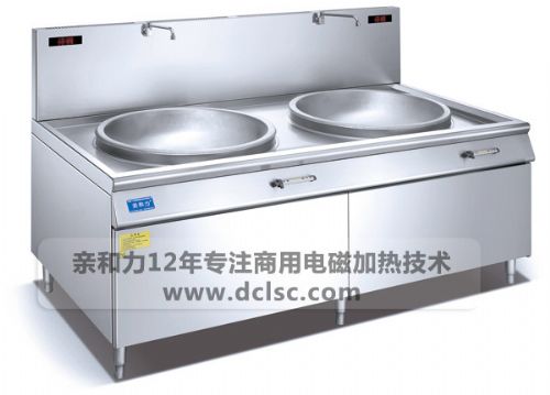 3、超高配商用电磁双头大锅灶厂家取材;亲和力厂家所有电磁炉均采用纯铜、均匀分布线盘,热效率利用率高,均匀加热不偏火,解决劣质线盘的偏火问题。