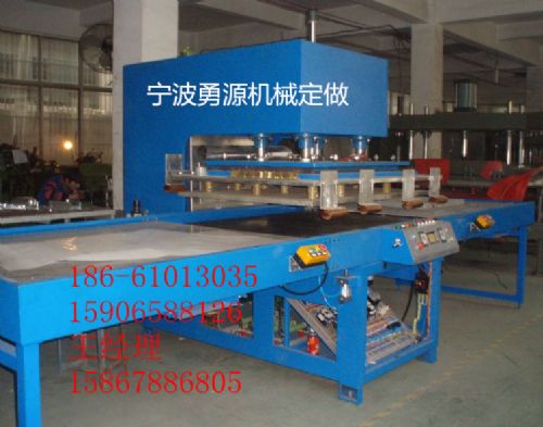 吸塑包装(包括上下双泡罩热合切边,泡罩与纸板热合切边),汽车内饰件、商标、文具盒、雨衣、吹气玩具、塑料封面, 凉液垫,鞋类制品、坐垫,各种包装袋,手提软袋等的热合加工, 各种凹凸形状的花纹图案、字母文字的压制。装上简单装置还可以进行烫金加工。