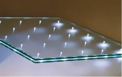 LED光源嵌入玻璃里形成各种样式、图案的高科技产品。其本身拥有出色的亮度及节能的特性。 LED玻璃科技可令玻璃表面看不见线路,适用于各式平板以及弯曲玻璃,满足顾客的各种设计应用需求。LED玻璃可阻隔99%紫外线及40%以上红外线,具有部分隔音的功能,同时也是一款