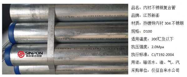 钢材料作为衬里层做成的复合钢管,卫生状况可以放心!