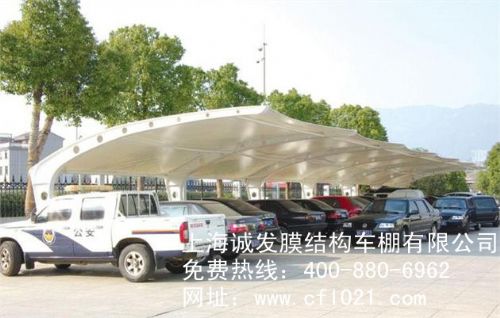 篷布材质是膜结构,而膜材的*大特点是强度高、耐久性好、防火难燃、自洁性好,不受紫外线影响,使用寿命长,一般15-30年。具有高透光率,透光率为13%,对热能反射率73%,热吸收量很少。正是因为这种划时代的膜材料的发明,使膜结构车棚成为现代化的**建筑。
