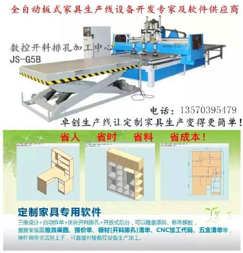 前端设计+自动拆单+优化开料+扫码排孔+开放式后台,可以随意添加、修改模板,直接呈现三维效果图、报价单、板材[开料排孔]清单和、五金清单、包装清单等,操作简单灵活易上手,可直接对接数控设备开料开槽、扫码排孔等主要功能软件的应用,完美诠释了柔性家具生产线的核心:数控设备与行业软件的完美结合应用,迎合了如今