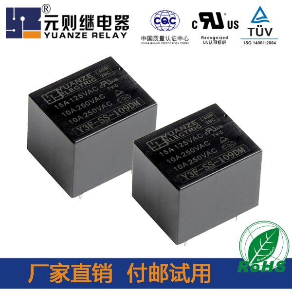 认证负载:15A/125VAC、10A/250VAC、10A/30VDC、TV-5/120VAC