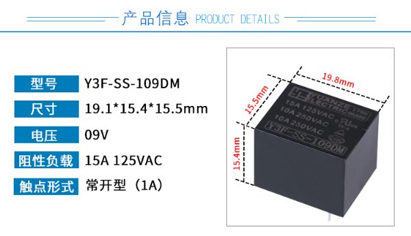 1、高触点容量:15安触点切换能力