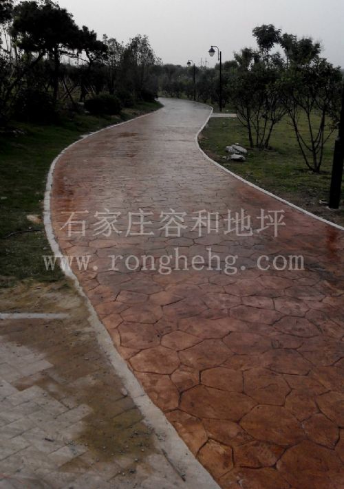 2、彩色艺术压印地坪是一种能在混凝土表面层依靠彩色强化料、着色脱模粉、*成型模具、专业工具及密封保护剂,在铺设混凝土时能在其表面层上创造出逼真的