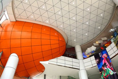 铝单板幕墙重量轻、强度高、防水、防污、防火、抗蚀、加工性能好,维护费用底、使用寿命长。铝 幕墙单板加工成弧形及异形,表面可喷涂成多种颜色,在墙面形成各种美丽的图案,并且可以和