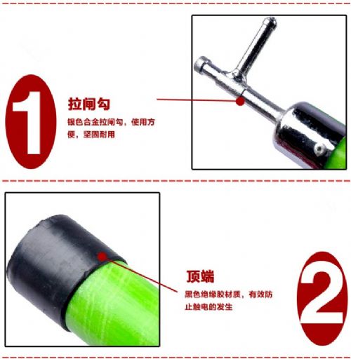 钢管精制而成。防雨式拉闸杆(绝缘操作棒)是针对户外雨天设计,防雨裙采用