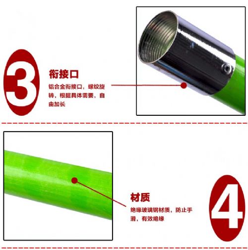 (3)绝缘操作杆扩展联接方便,选择性强,联接形式多样,可以灵活组合。