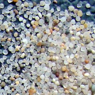 2.看形状:天然海沙是无棱角的小颗粒;太圆,有棱角的都不是天然沙。