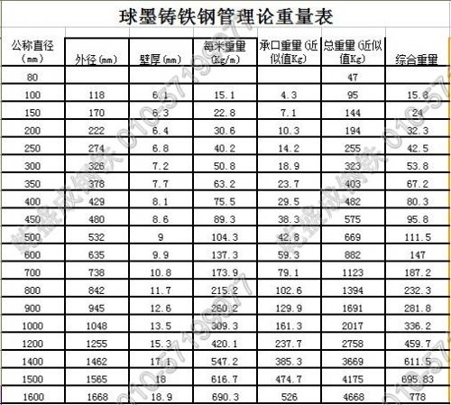 主要成分有碳、硅、锰、硫、磷和镁等。在铁素体和珠光体基体上分布有一定数量的球状石墨,根据公称口径及对延伸率的要求不同,基体组织中的铁素体和珠光体的比例有所不同,小口径的珠光体比例一般不大于20%,大口径的一般控制在25%左右。*小抗拉强度:420/Mpa,*小屈服强度300/Mpa,*小延伸率7%。球墨