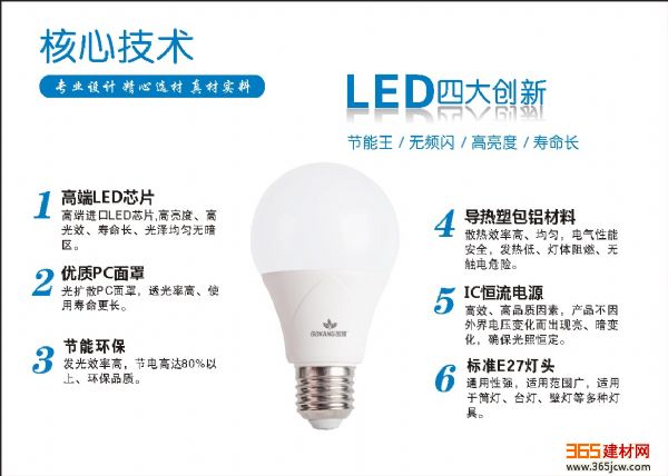产品特点:专利设计,造型美观;外壳表面采用非金属材质,使用安全;高光效,高显指,发光角度大,符合欧美安全标准,节能环保。