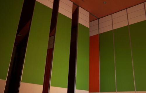 墙板由高强度的钢制骨架、特制橡胶、优质隔音棉及中密度板(特殊情况也可采用其它板材)构成,板面平整,坚固耐撞击。