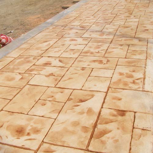 颜料,经特殊处理后渗透进混凝土表层。粉末状的亚石压花地坪脱模料是用于压花过程中保证混凝土面层完整的覆盖率,同时又提供了第二种颜色并与强固粉的基本颜色组合、从而创造出天然逼真的效果。亚石压花地坪保护剂的喷涂不仅起到保护混凝土的作用,而且使混凝土的颜色与图案更加鲜艳,层次质感更加强烈