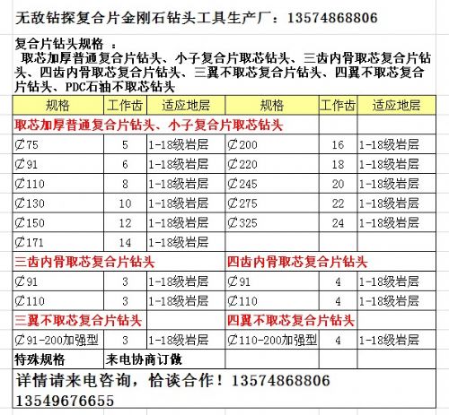 ◆使用范围广:实践证明,该钻头适用 碳酸盐层,灰岩,白垩岩,粘土岩粉