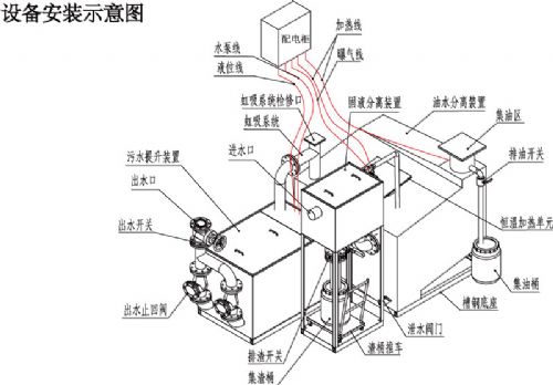 ②设备内部设计有高分子聚合吸附系统,系统形成10μm-30μm的微小气泡,在液体表面张力的作用下,乳化油分子团吸附在气泡上,升至集油区,具有抗菌、自闭软曝气特点,安全性能高。
