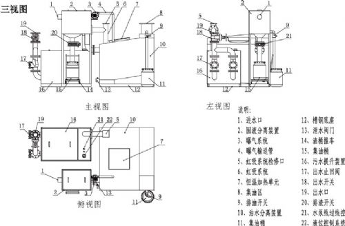 ③隔油仓和提升仓之间设计有超稳流出水装置,具有稳定液面的功能,把整个系统受水量大小影响的降到*低,,同时保证了,油脂能够稳定持续的流出。