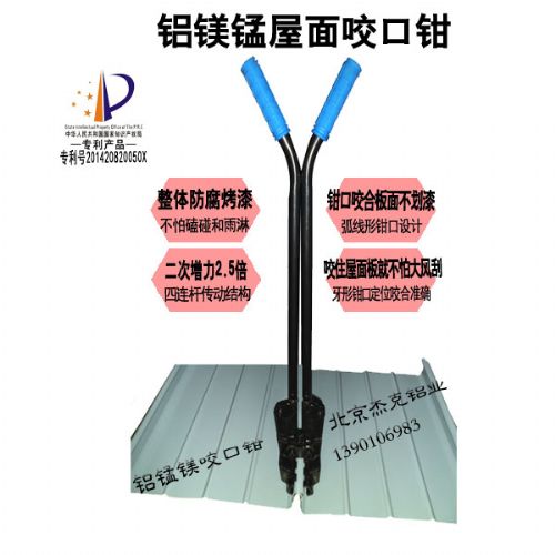 北京杰克铝业公司生产的直立锁边铝镁锰屋面手动咬口钳带有两次增力并准确定位且获得国家专利保护。