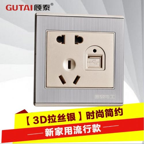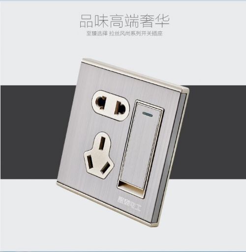 拉丝材质, 耐冲击 易清洁 高阻燃 安全环保, 高端奢华不锈钢拉丝面板 钢架结构,**变形!加厚一体耐磨铜件 防单插安全保护门,防止儿童触电发生!行业*制作工艺,面板采用行业*技术 高阻燃 耐冲击 精选优质材料打造好品质开关