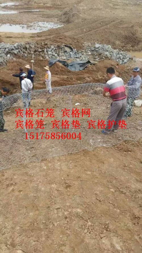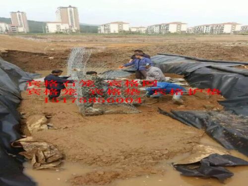 是将抗腐蚀、耐磨损、高强度的低碳重镀锌或镀铝锌加混合稀土钢丝,或包覆聚合物的同质钢丝,通过*设备,编织成的多绞状、六边形网目的网片或夹筋网片,然后将网片根据工程设计要求裁剪、组装成固滨格宾笼、绿滨