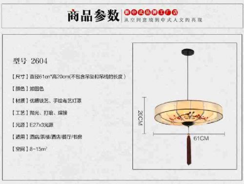 灯罩辅材质: 布灯身辅材质: 铁质保年限: 3年颜色分类: 直径30cmLED 直径40cmLED 直径50cmLED 直径60cmLED 直径80cmLED灯身主材质: 铁灯罩主材质: 布光源类型: