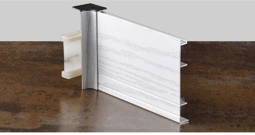 切割机裁出相应尺寸,卡在相应卡扣上。铝合金踢脚线每条长度为3米,在超出踢脚线长度墙面时要在接口处中间加装一个卡