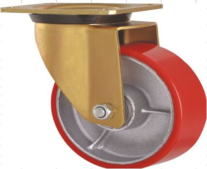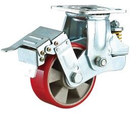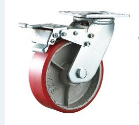 4) 双轴PU轮/双轴韩式PU轮:轮体是PU包PP、尺寸4-8寸、载重270-480/260-380KG/220-430KG、双滚珠轴承,安装方式:平底 (有带/ 有不带/韩式带金属防尘盖)顶刹、边刹