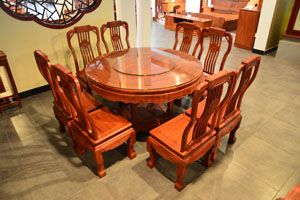 《汉韵餐桌》是雅典红木汉韵系列的又一经典之作,在雕饰、设计和构造上充分发挥汉韵系列家具的特点。餐桌的面板依然是精选大料,并且是顺纹结构,充分展现出